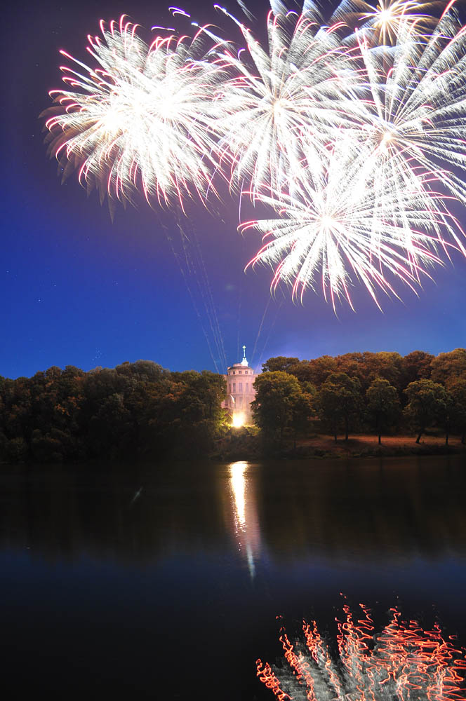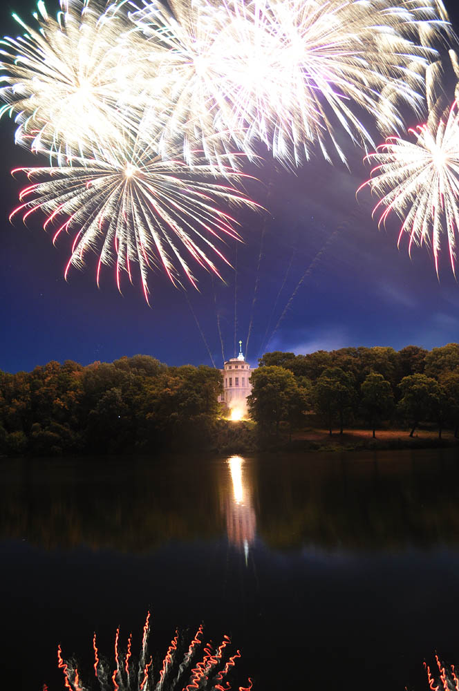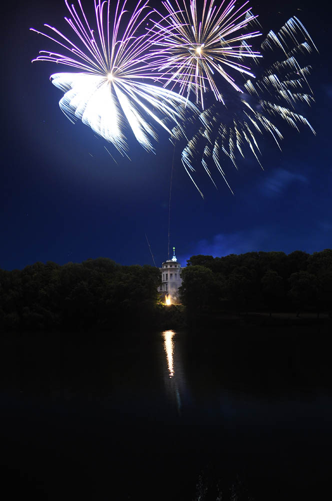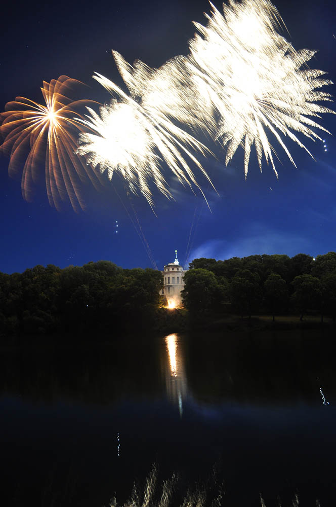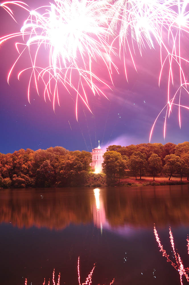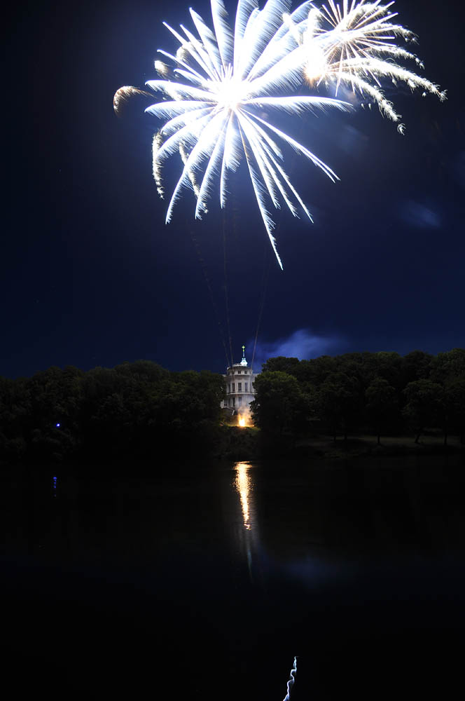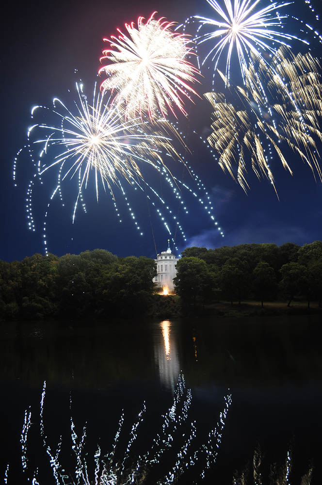 Фейерверк мне лично нравится смотреть именно в Богородицке (если попадаю, конечно). Если выйти на Набережную, то раскрашивается всё небо, а отражения в воде, вид на дворец дополняют картину. В Брянске такого нет. У нас 20 километром реки в городе, но салют делают вдали от нее, поэтому смотреть имеет смысл только в небо. Да и чем ближе к салюту, тем больше народу у нас. Это впечатление портит окончательно. У вас же наоборот - на Набережной достаточно свободно, можно выбрать любое место для наблюдения. И салют красивый. Хотя мои соседи по просмотру (богородчане) всё равно сказали, что не очень