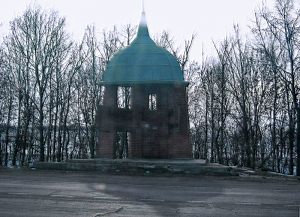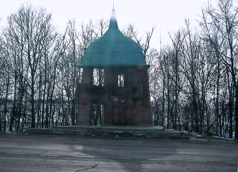 Кирпичная конструкция в форме средневекового военного шлема отмечала поворот с трассы М4 на Куликово поле. Уничтожена в 2008 году в результате ДТП.